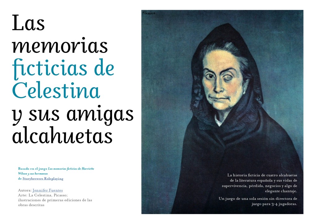 Celestina y las otras dos grandes alcahuetas de nuestra literatura, Trotaconventos y Brígida, podían también escribir sus Memorias. ¿Cuántas cosas habrían visto fuera y dentro de sus propias obras? ¿Cuántos secretos guardaban, que ahora podían salir a la luz, de sus clientes? Así que me puse a ello y este es el resultado: la traducción de Las memorias ficticias de Harriette Wilson y sus hermanas y la expansión que he escrito con el beneplácito de las autoras del juego, Las memorias ficticias de Celestina y sus amigas alcahuetas, con una pequeña guía para profes con ideas para llevarlo a clase.