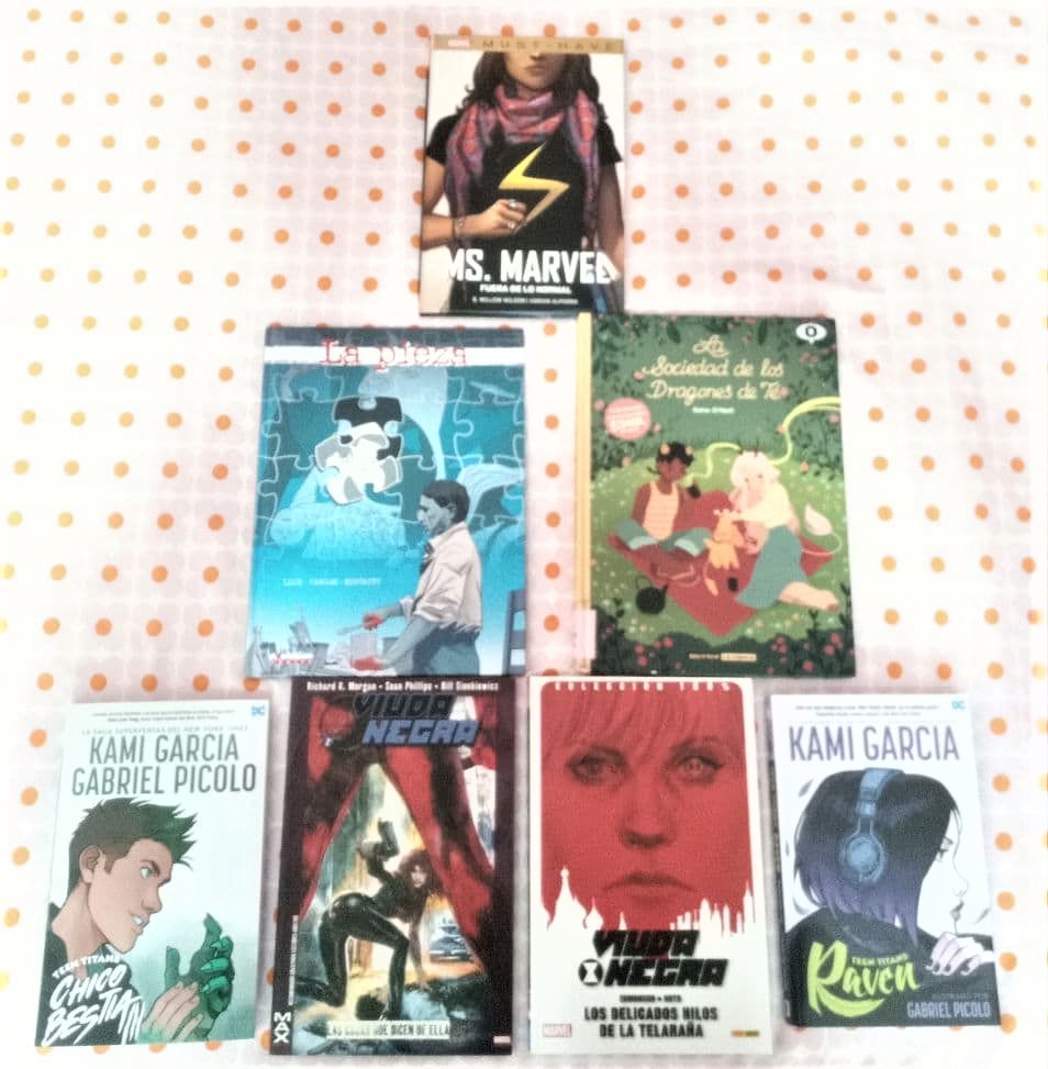 - Cómics. Muchos cómics y muy distintos (aclaración: dentro de los cómics incluyo las novelas gráficas y cualquier otra obra que use este tipo de lenguaje visual y escrito).